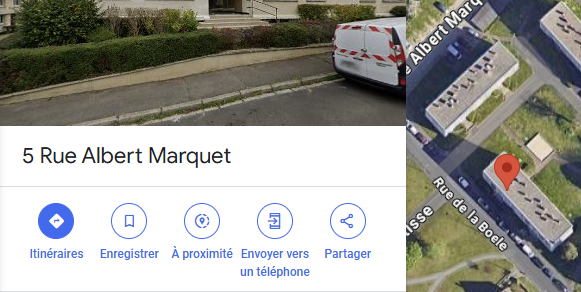 Vous pouvez utiliser le numéro de votre entrée + Rue Albert Marquet.