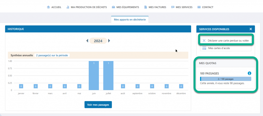 Une fois le compte créé, la gestion de la carte et la visualisation de vos passages se fait via le site : https://siredom.ecocito.com/Usager/Badge